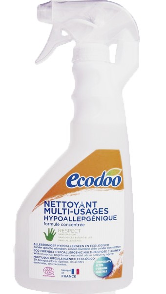 Le Nettoyant Multi-Usages Hyppoallergénique Ecodoo est facile à utiliser, il nettoie tout du sol au plafond.Il est hypoallergénique: formulé pour minimiser les risques de réactions allergiques, sans azurant optique, sans huile essentielle, sans colorant, il respecte les peaux sensibles.Caractéristiques